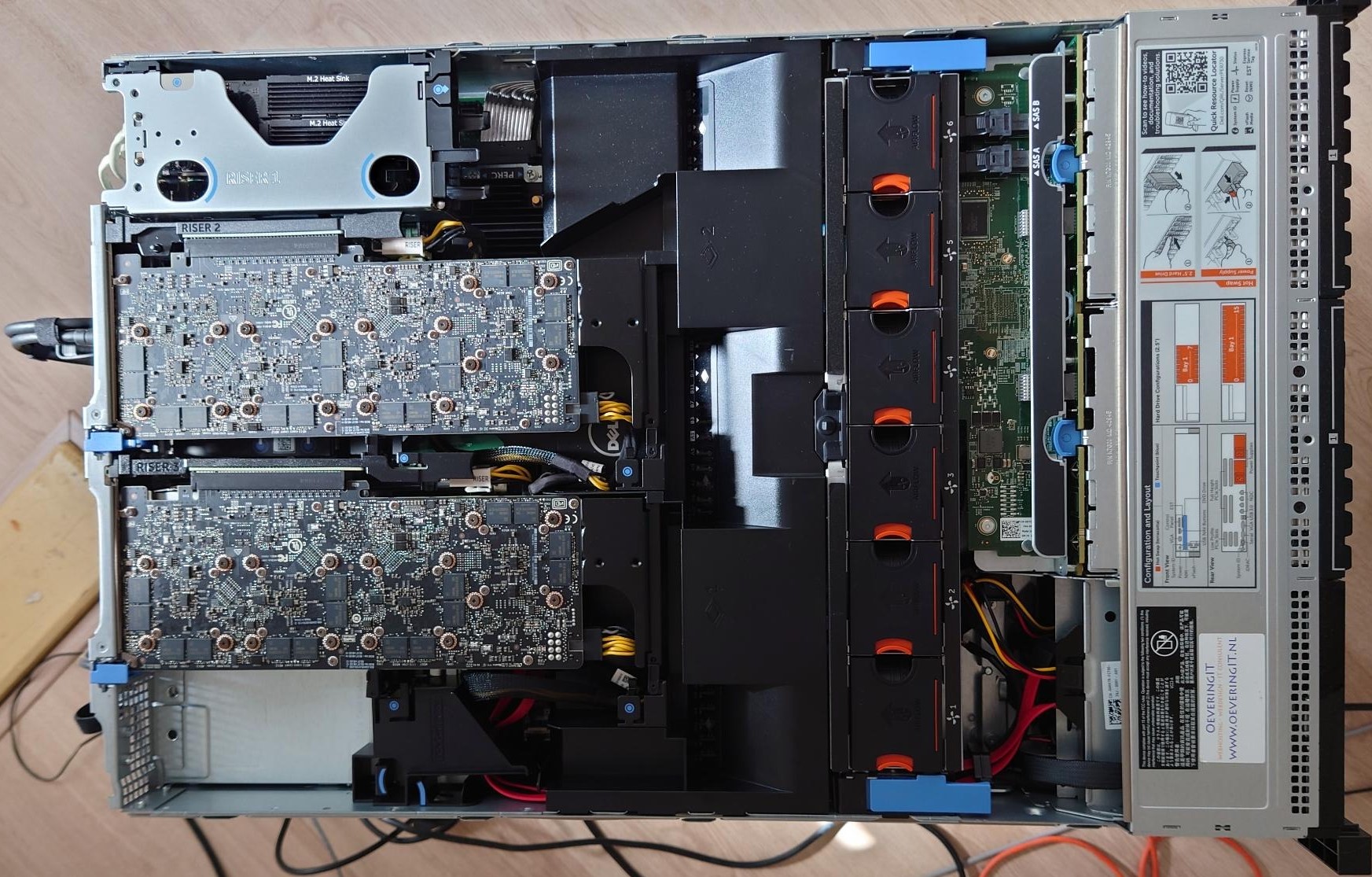 Talking about networking. I’ve upgraded the connection between the servers from 10 Gbps to 40 Gbps. It was not completely needed, I also could have gone for 25 Gbps as well. However, this was available and not even that much more expensive than 25 Gbps. It took some time to find the right combination. I was looking/hoping for 100 Gbps but since most 100 Gbps PCIe 3.0 cards need a x16 slot that was not possible. Therefore, I swapped out the original Network Daughter Card (NDC) for the Dell XL710-QDA2 NDC providing 2 ports of 40 Gbps.